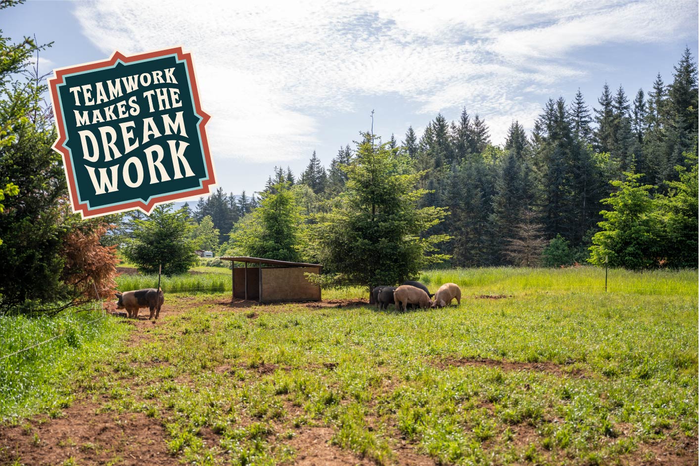 We chose our farm location in Oregon carefully. We're forty minutes from the center of Portland, nine miles from our Animal Welfare Approved meat processor, and three miles from a historic, family owned feed mill. These partners are vital to our success and our proximity to them reduces the miles on every pork chop and chicken wing we produce.